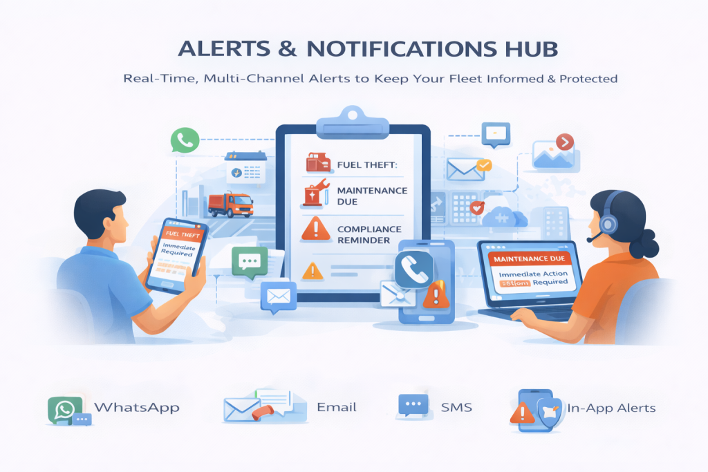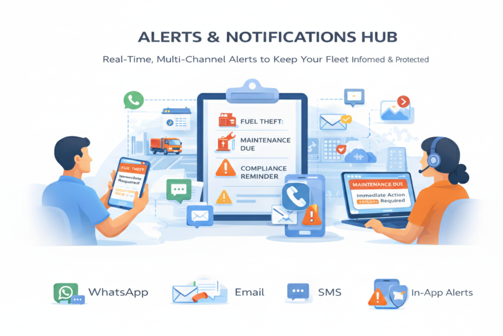 Transform fleet maintenance from a cost center into a performance advantage. FleetSaathi’s Maintenance Module unifies preventive scheduling, fault tracking, and service history in one intelligent platform. Automate service reminders by mileage or time, and receive real-time fault alerts via driver apps, WhatsApp, email or in-app notifications. Every issue triggers a collaborative ticketing workflow—ensuring mechanics respond fast and downtime stays minimal. With complete digital records and cost analytics for every vehicle, you gain full visibility and control over maintenance efficiency and spend.